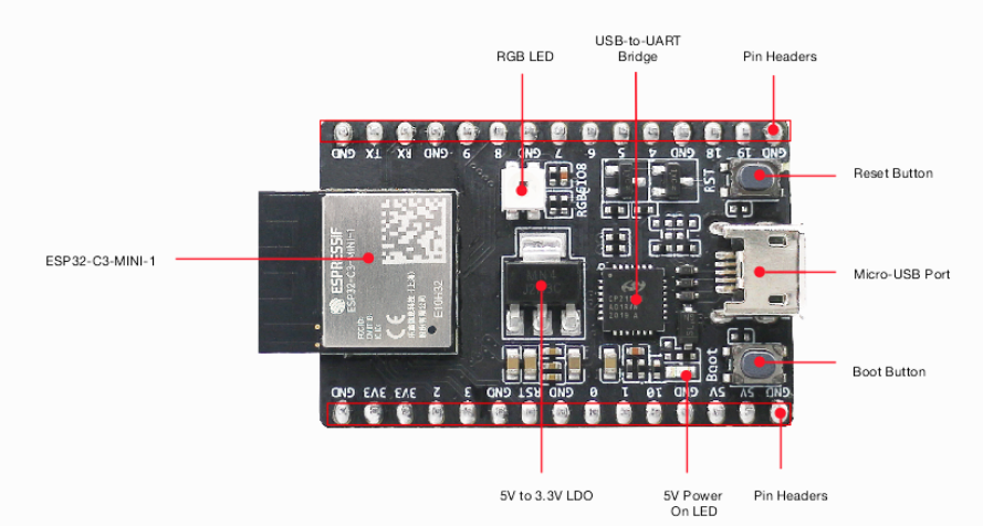 Pin layout of ESP32-C3 DevKitM-1